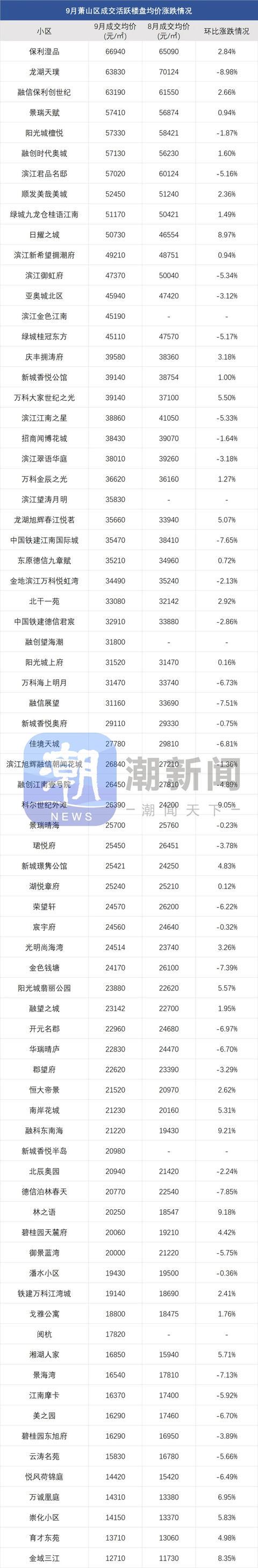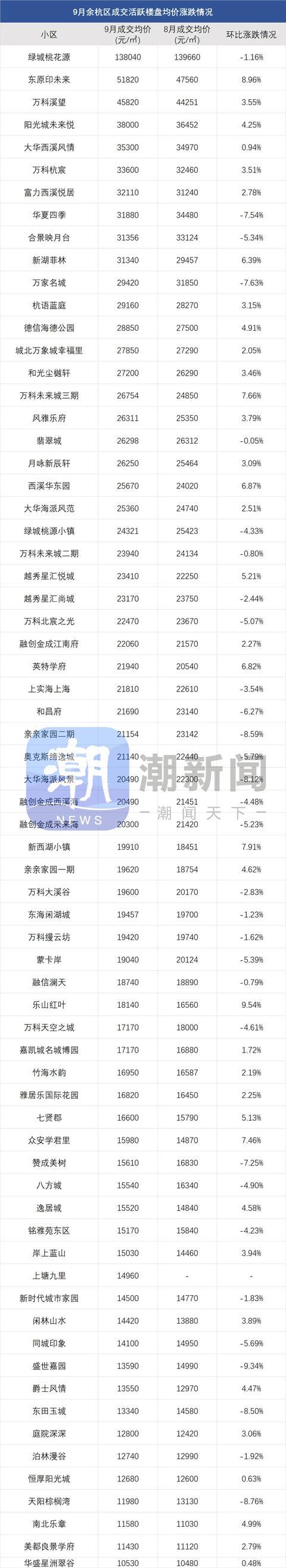 注:一、以上数据来源于中指研究院,统计为2025年9月二手房成交均价,2025年8月二手房成交均价;二、在不同成交时期,成交的物业类型(别墅、排屋、公寓等)、精装与否、户型大小、楼层与楼幢位置的不同会造成价格变动;三、有些房源为了减少税费,会稍微压低成交单价;而有些二手房为了增加银行贷款,也有可能稍微做高单价,具体房源信息建议去实地看看。